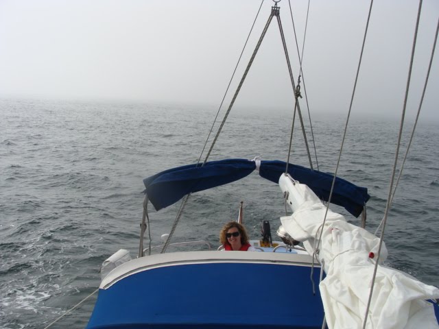 See it again? Just on the other side of this sailboat. Big, thick fog. The day was otherwise sunny. In fact when we were in the fog, I still wore my sunglasses.